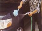 まず水でホコリや泥汚れを落とします。重曹電解洗浄液生成器で生成された電解洗浄液(重曹電解洗浄液)原液を30倍くらいに薄めてスプレーし、2~3分後に、汚れが浮いてきますので水をかけて洗い流します。